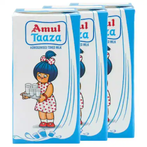 Amul Taaza Homogenised Toned Milk 1 L (Tetra Pak) (Pack of 3)